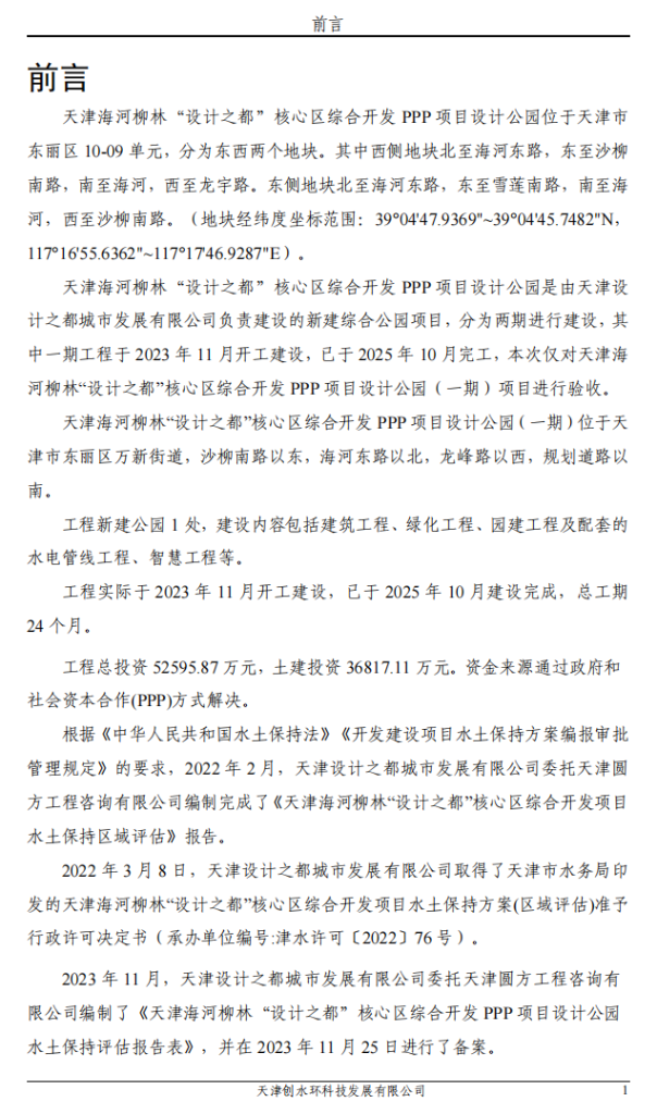 附件2:水土保持设施验收报告-天津海河柳林“设计之都”核心区综合开发PPP项目设计公园(一期).pdf